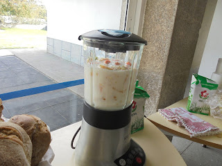 Proporcionou-se aos alunos um lanche saudável com batidos de fruta diversificada e um pão de cereais com fiambre.