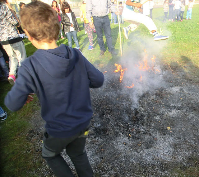 Quando a fogueira tinha pouca chama, saltamos. De seguida apanhamos e comemos castanhas. Elas estavam com bom aspeto, deliciosas e saborosas!