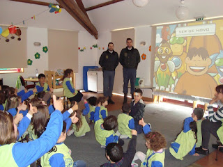 A equipa da Escola Segura veio falar connosco e trouxe um filme muito bonito e educativo. Falaram-nos sobre a segurança na rua, em casa, na escola.
