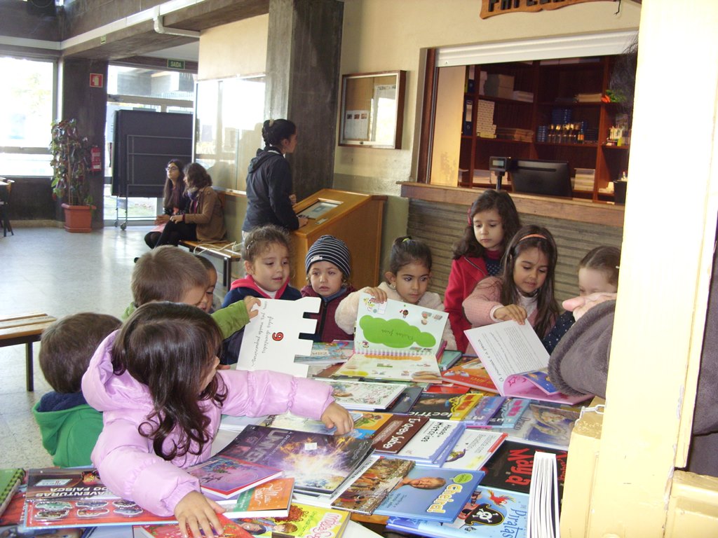 Hoje de manhã fomos à Feira do Livro na sede do Agrupamento. Ouvimos a história de Natal que nos contou a Professora Marília, folheamos vários livros e alguns de nós escolheram e compraram livros com histórias muito bonitas.