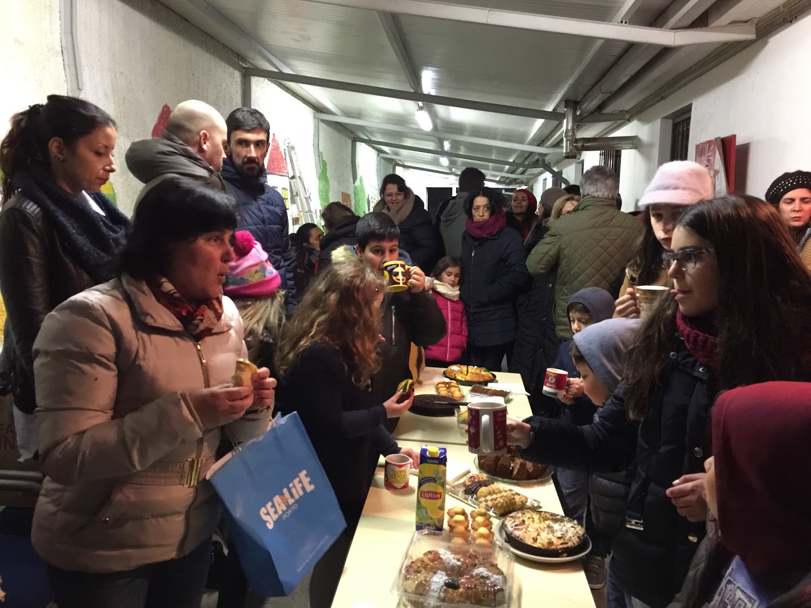 Findas as palmas que celebraram a ternura do momento e como o frio lembrava a proximidade do nascimento do Menino, a Associação de Pais ofereceu chocolate quente que foi acompanhado com uns miminhos doces trazidos pelos pais e encarregados de educação.
