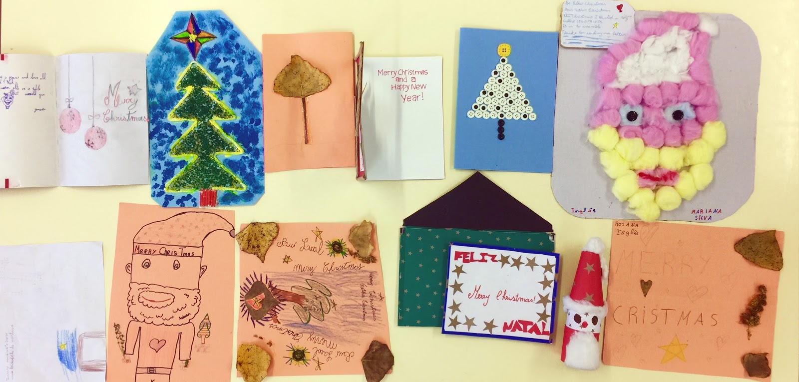 Com a proximidade da quadra natalícia, as professoras Lia Cunha e Margarida Miranda, docentes de Inglês, trabalharam com os alunos dos terceiro e quarto anos, a mensagem de Boas Festas e a construção do Postal de Natal. O produto final foi um conjunto muito interessante e diferenciado de postais de Natal.