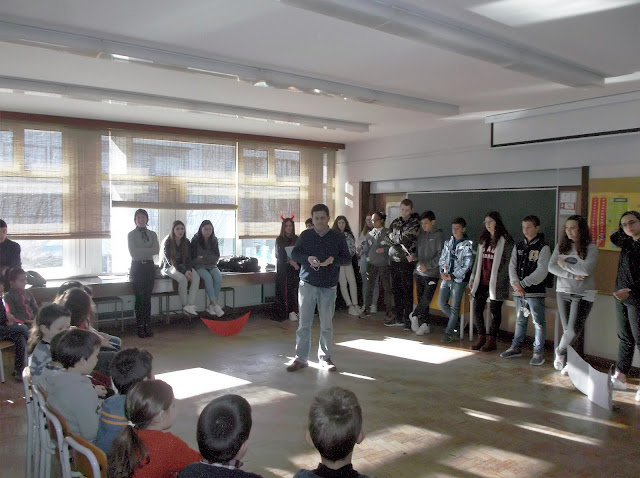 Na terça-feira, recebemos a visita da turma do 9º A, da Escola Básica e Secundária Sidónio Pais. Estes vieram apresentar-nos a obra "Auto da Barca do Inferno", de Gil Vicente, adaptado por Rosa Lobato de Faria.